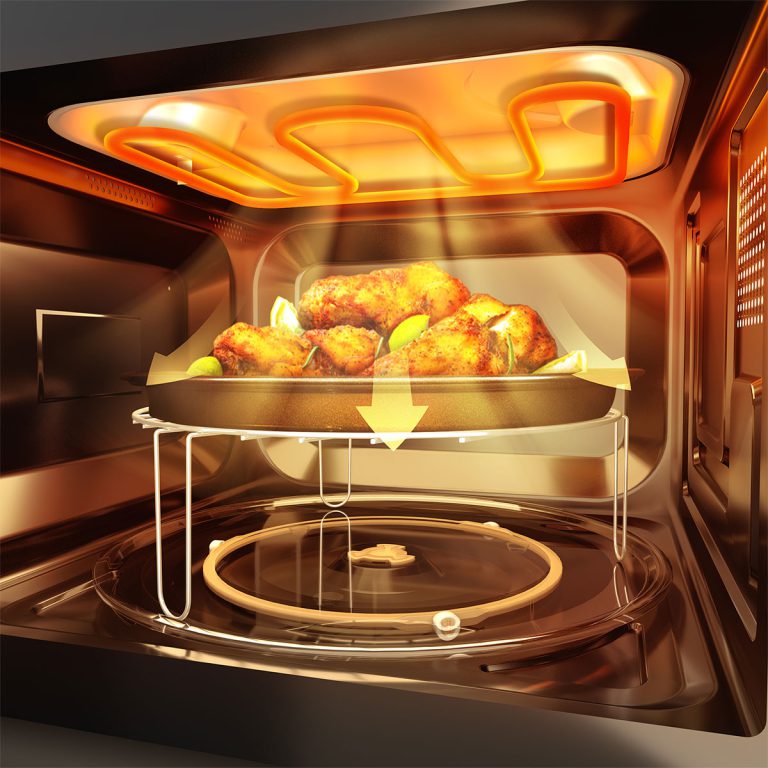 ظرفیت 42 لیتر دارای گریل با قدرت 1500 وات مجهز به صفحه نمایش دیجیتال امکان پخت ترکیبی (Combinaison) قابلیت یخزدایی (Defrost) ابعاد: عرض:54، عمق: 46 و ارتفاع: 33 سانتیمتر