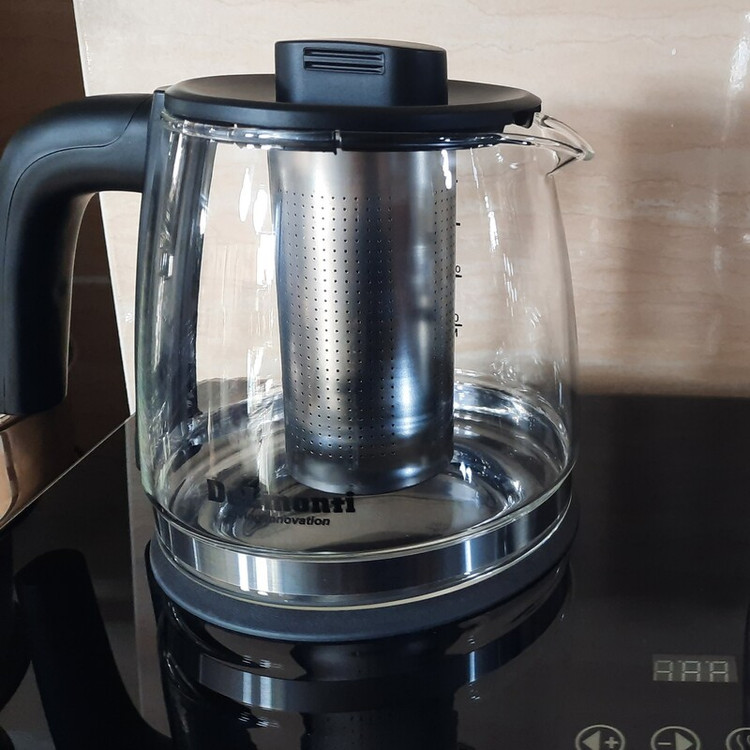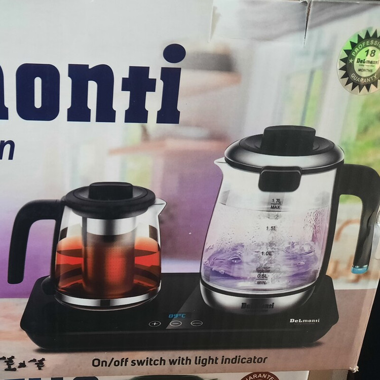 ظرفیت کتری ۱.۷ لیتر ظرفیت قوری ۱.۵ لیتر فیلتر تفاله گیر چای جنس بدنه کتری و قوری پیرکس دارای صفحه گرم نگه دارنده صفحه لمسی