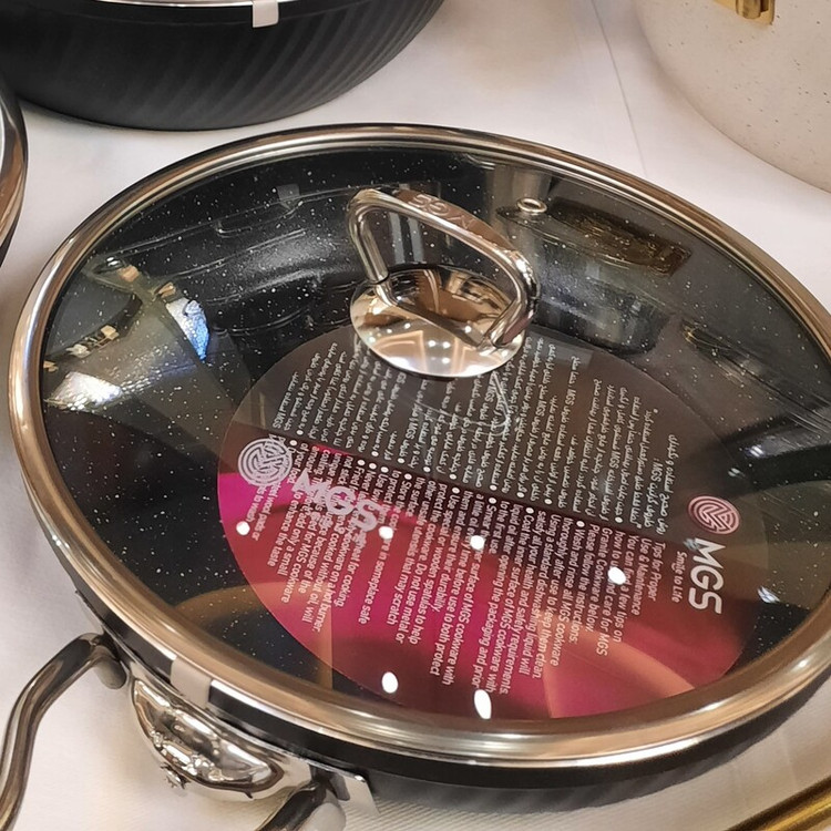 قابلمه سایز ۱۶ -۲۰-۲۴-۲۸-۳۲ تابه ۲۴ - ۲۸ تکدسته یراق استیل و طلایی رنگ مشکی -